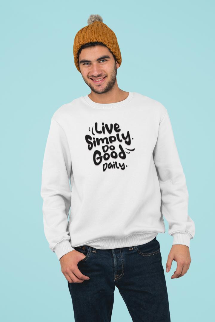 The “Live Simply Do Good Daily” sweatshirt is a reminder to live with purpose, kindness, and gratitude — every single day.